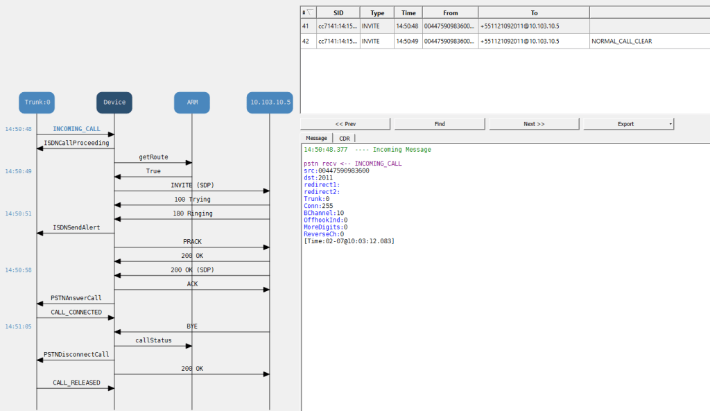 Let make a check that the PRI is delivered by syslog to the M800 GW on VR01