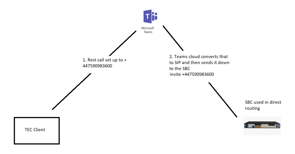 endpoint generates the rest request and teams converts to an SIP invite and sends to the SBC