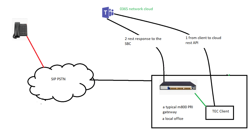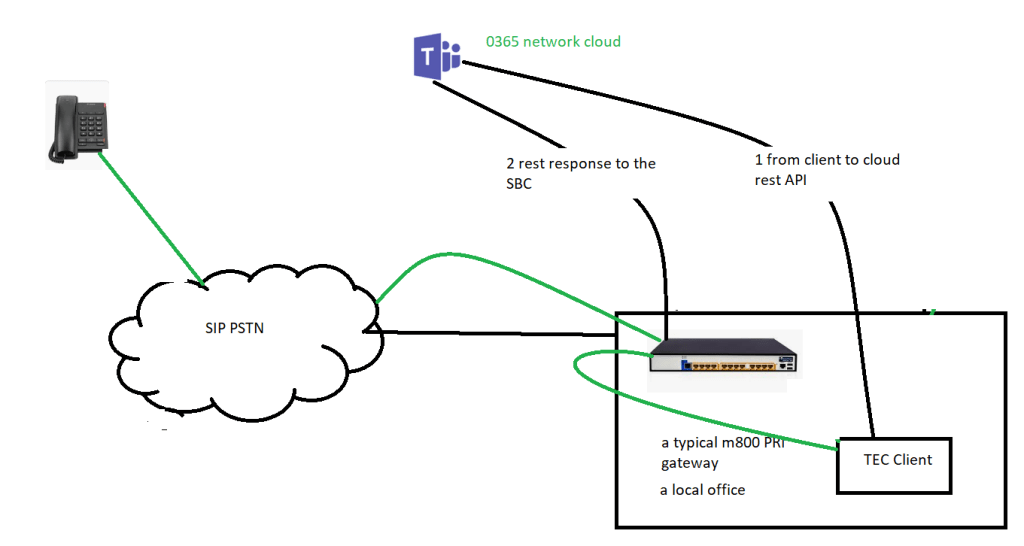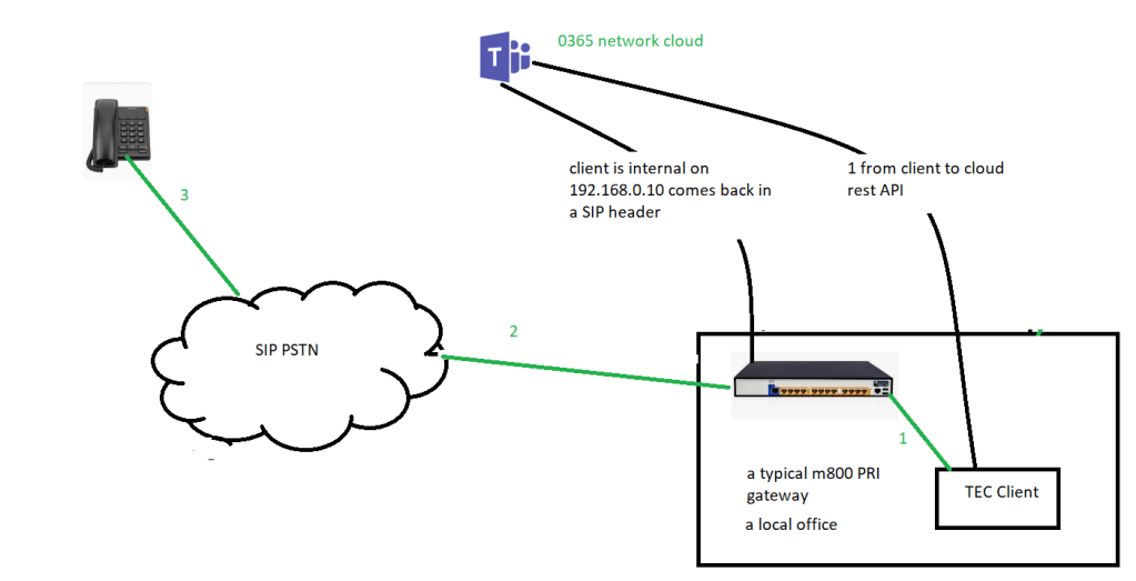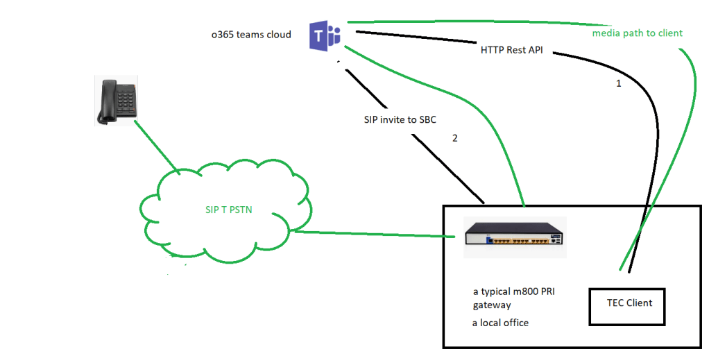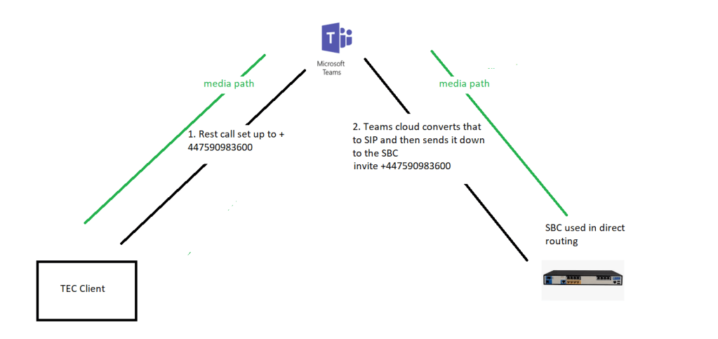 Without media bypass the signalling and media go from team’s client ot the SBC just like the TEC to SBC path